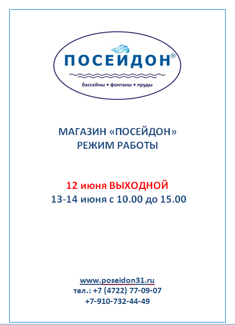 Белгородская обл., г. Белгород, ул. Лермонтова 49а. +7 (4722) 77-09-07, E-mail: market@poseidon31.ru